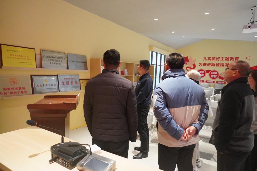 慰问活动结束后,陈平书记一行来到了“百千万工程”首批典型村——阳陂村。在这里,他们参观了阳陂新党群服务中心和新街水碧道等地,深入了解了阳陂村在乡村振兴工作中取得的新进展和新风貌。在阳陂新党群服务中心,我校“双百行动”驻乳源瑶族自治县服务队队长毕建永详细介绍了帮扶工作的具体措施和成效,以及乡村振兴工作的规划和展望。