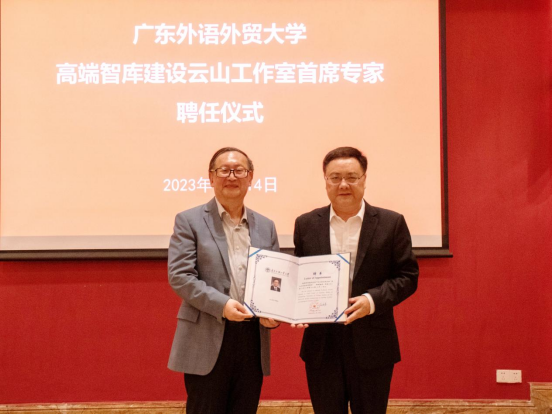 10月14日下午,著名国际问题专家杨洁勉教授续聘我校高端智库建设云山工作室首席专家仪式在北校区行政楼贵宾厅举行。校党委书记石佑启教授出席聘用仪式并为专家颁发聘书。会议由副校长何传添教授主持,人力资源部、科研部等单位负责人参加仪式。