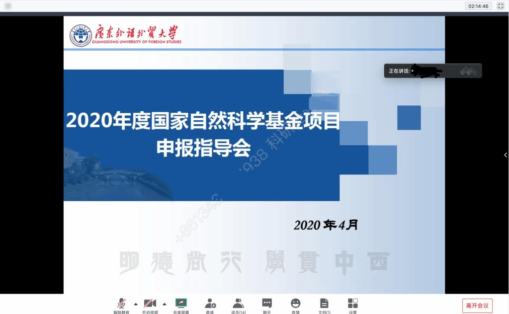 本网讯 4月10日上午,我校2020年度国家自然科学基金项目申报指导会通过线上方式开展。学校10余位申报人员参加了指导会。为确保项目申报书质量,学校近期已通过线上指导、通讯指导等方式指导国家自然科学基金项目40余人次,各相关学院和研究机构也正通过多种形式组织项目申报指导工作。